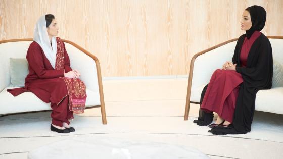 اجتمعت صاحبة السمو الشيخة موزا بنت ناصر، رئيس مجلس إدارة مؤسسة قطر ومؤسسة التعليم فوق الجميع، اليوم، بسعادة السيدة آصفة بوتو زرداري.