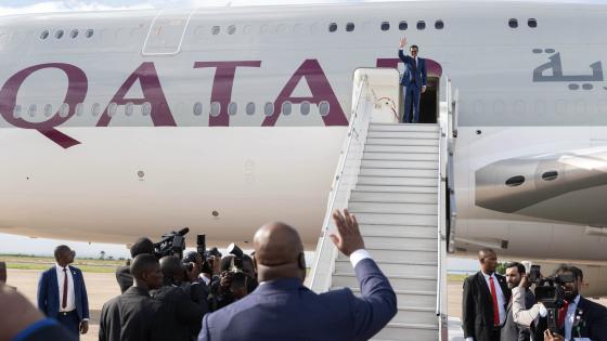 غادر حضرة صاحب السمو الشيخ تميم بن حمد آل ثاني أمير البلاد المفدى، جمهورية الكونغو الديمقراطية الصديقة، بعد زيارة دولة أجراها.