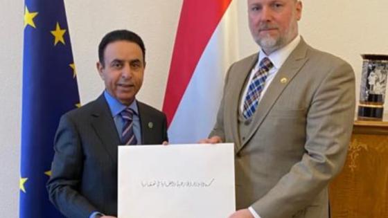 تسلم سعادة السيد إيفان ميدفتسكي مدير إدارة المراسم بوزارة الخارجية والتجارة في هنغاريا، نسخة من أوراق اعتماد سعادة السيد عبدالله بن فلاح بن عبدالله الدوسري سفيرًا فوق العادة مفوضًا لدولة قطر لدى هنغار
