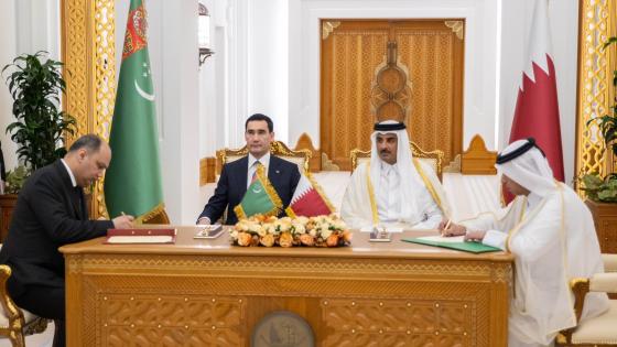 شهد حضرة صاحب السمو الشيخ تميم بن حمد آل ثاني أمير البلاد المفدى، وفخامة الرئيس سردار بيردي محمدوف رئيس تركمانستان، اليوم في الديوان الأميري التوقيع على عدد من الاتفاقيات ومذكرات التفاهم بين حكومتي البلدين.