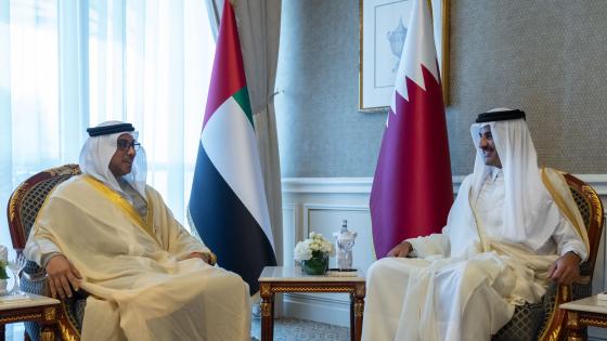 استقبل حضرة صاحب السمو الشيخ تميم بن حمد آل ثاني أمير البلاد المفدى، سمو الشيخ منصور بن زايد آل نهيان نائب رئيس الدولة نائب رئيس مجلس الوزراء رئيس ديوان الرئاسة بدولة الإمارات العربية المتحدة الشقيقة.