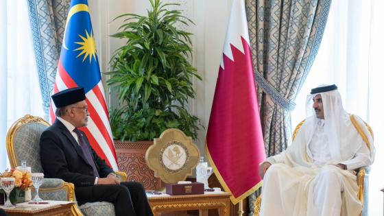 عقد حضرة صاحب السمو الشيخ تميم بن حمد آل ثاني أمير البلاد المفدى، مع دولة الدكتور أنور إبراهيم رئيس وزراء ماليزيا جلسة مباحثات رسمية في الديوان الأميري صباح اليوم.