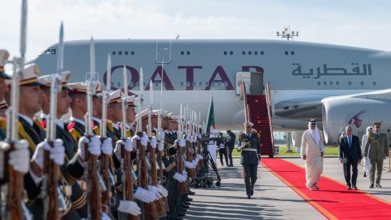 وصل حضرة صاحب السمو الشيخ تميم بن حمد آل ثاني أمير البلاد المفدى، اليوم، إلى العاصمة الجزائر بالجمهورية الجزائرية الديمقراطية الشعبية الشقيقة.