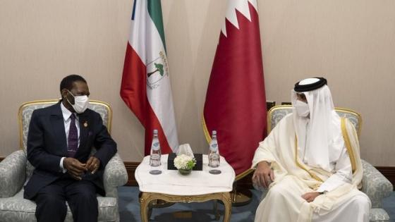 التقى حضرة صاحب السمو الشيخ تميم بن حمد آل ثاني أمير البلاد المفدى، مع فخامة الرئيس تيودورو أوبيانغ انغويما امباسوغو رئيس جمهورية غينيا الإستوائية، وذلك على هامش انعقاد القمة السادسة لمنتدى الدول المص