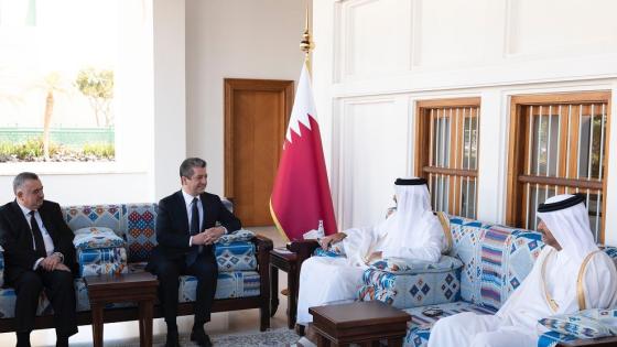 استقبل حضرة صاحب السمو الشيخ تميم بن حمد آل ثاني أمير البلاد المفدى، سعادة السيد مسرور بارزاني رئيس حكومة إقليم كوردستان العراق والوفد المرافق بمناسبة زيارته للبلاد، وذلك في مجلس الشيخ عبدالله بن جاسم