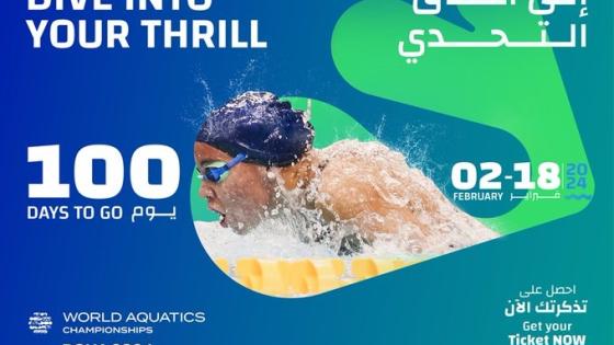 أعلنت اللجنة المنظمة لبطولة العالم للألعاب المائية "الدوحة 2024"، اليوم، عن طرح تذاكر البطولة، تزامنا مع بقاء 100 يوم على انطلاق الحدث الذي يقام لأول مرة في الشرق الأوسط.