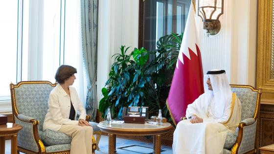 استقبل حضرة صاحب السمو الشيخ تميم بن حمد آل ثاني أمير البلاد المفدى، بمكتبه في الديوان الأميري صباح اليوم، سعادة السيدة كاثرين كولونا وزيرة أوروبا والشؤون الخارجية بالجمهورية الفرنسية الصديقة، والوفد المرافق لها بمناسبة زيارتها للبلاد.