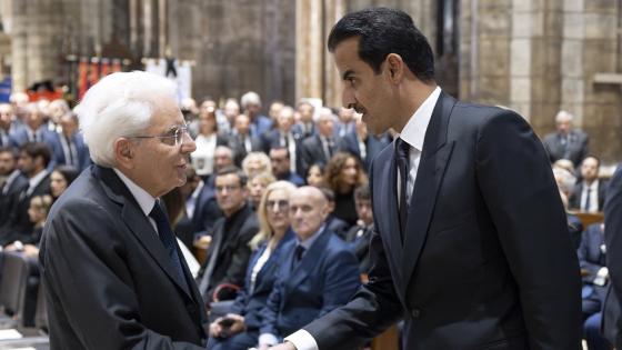 شارك حضرة صاحب السمو الشيخ تميم بن حمد آل ثاني أمير البلاد المفدى، في الجنازة الرسمية التي أقيمت اليوم لتشييع جثمان رئيس الوزراء الإيطالي الأسبق سيلفيو برلسكوني.