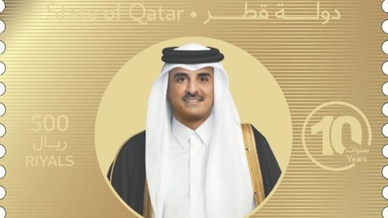 دشن سعادة السيد محمد بن علي المناعي وزير الاتصالات وتكنولوجيا المعلومات، 6 طوابع بريدية بمناسبة الذكرى العاشرة لتولي حضرة صاحب السمو الشيخ تميم بن حمد آل ثاني أمير البلاد المفدى، مقاليد الحكم في البلاد.