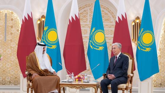 عقد حضرة صاحب السمو الشيخ تميم بن حمد آل ثاني أمير البلاد المفدى، وفخامة الرئيس قاسم جومارت توكاييف رئيس جمهورية كازاخستان الصديقة، جلسة مباحثات رسمية.