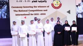 كرمت وزارة التربية والتعليم والتعليم العالي، بالتعاون مع الصندوق القطري لرعاية البحث العلمي التابع لمجلس قطر للبحوث والتطوير والابتكار اليوم، الشركاء والجهات الداعمة الفائزة بمسابقة البحث العلمي والاب