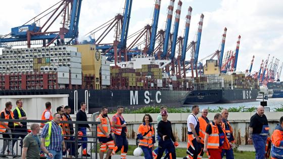 بدأ عمال أكبر ميناء في ألمانيا في هامبورج اليوم، إضرابا عن العمل لمدة يومين. وكانت نقابة فيردي قد دعت إلى هذا الإجراء لزيادة الضغط في مفاوضات الأجور الجارية.