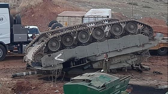 نشرت هيئة البث الإسرائيلية، مقطع فيديو يظهر لحظة انقلاب دبابة من طراز "ميركافا 4" تابعة للواء 188، مساء أمس الثلاثاء، في بلدة مارون الراس بجنوب لبنان.