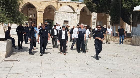 اقتحم عشرات المستوطنين، اليوم، المسجد الأقصى المبارك من جهة باب المغاربة، تحت حماية قوات الاحتلال الإسرائيلي. وقام المستوطنون بجولات استفزازية، وأدوا طقوسا تلمودية عنصرية في باحاته، و"استمعوا لشروح