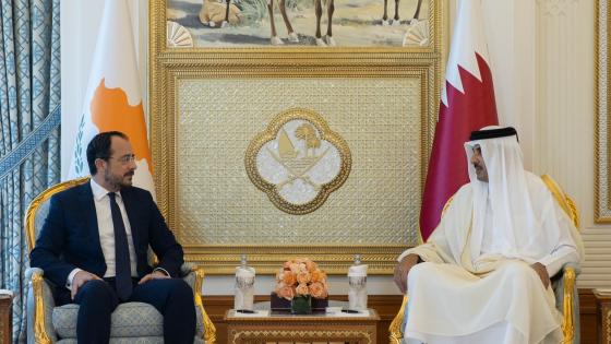 عقد حضرة صاحب السمو الشيخ تميم بن حمد آل ثاني أمير البلاد المفدى، وفخامة الرئيس نيكوس خريستودوليدس رئيس جمهورية قبرص جلسة مباحثات رسمية بالديوان الأميري، صباح اليوم.