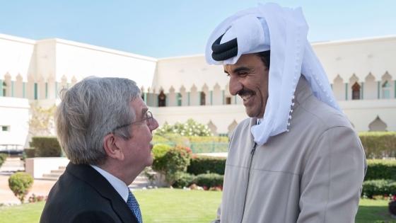 استقبل حضرة صاحب السمو الشيخ تميم بن حمد آل ثاني أمير البلاد المفدى، بمجلس الشيخ عبدالله بن جاسم بالديوان الأميري صباح اليوم، سعادة الدكتور توماس باخ رئيس اللجنة الأولمبية الدولية.