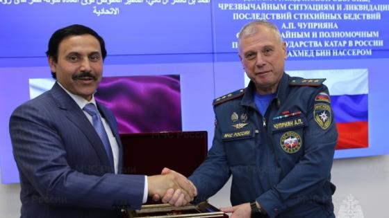 منحت وزارة الدفاع المدني والطوارئ وإزالة عواقب الكوارث الطبيعية في روسيا الاتحادية، سعادة الشيخ أحمد بن ناصر آل ثاني سفير دولة قطر لدى روسيا الاتحادية.