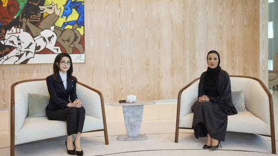 اجتمعت صاحبة السمو الشيخة موزا بنت ناصر، رئيس مجلس إدارة مؤسسة قطر للتربية والعلوم وتنمية المجتمع ومؤسسة التعليم فوق الجميع، اليوم، بسعادة السيدة كيم كون هي، حرم فخامة رئيس جمهورية كوريا.