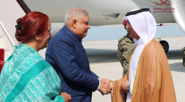 تقدم سمو الشيخ عبدالله بن حمد آل ثاني نائب الأمير، مستقبلي سمو الشيخ مشعل الأحمد الجابر الصباح ممثل سمو أمير دولة الكويت الشقيقة ولي العهد، لدى وصوله والوفد المرافق إلى الدوحة اليوم.