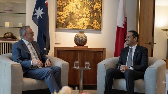 اجتمع معالي الشيخ محمد بن عبد الرحمن بن جاسم آل ثاني رئيس مجلس الوزراء وزير الخارجية ،في كانبرا اليوم، مع دولة السيد أنتوني ألبانيزي رئيس وزراء أستراليا.
