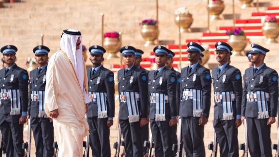 أقيمت لحضرة صاحب السمو الشيخ تميم بن حمد آل ثاني أمير البلاد المفدى، مراسم استقبال رسمية لدى وصوله قصر راشتراباتي بهوان بالعاصمة نيودلهي، في الهند الصديقة اليوم