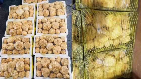 يشهد معرض ومزاد سوق واقف للفقع الذي يقام بنسخته الثالثة في الساحة الشرقية للسوق، إقبالاً كبيراً من الزوار ومحبي الفقع.