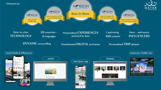 فاز جهاز "قطر للسياحة" بخمس جوائز في مجال التحول الرقمي من "هورايزن إنتراكتيف" التي تعنى بمجال التصاميم التفاعلية وتصميم المواقع الإلكترونية ووسائل الإعلام الإبداعية وتكريم المواقع الإلكترونية المثالي