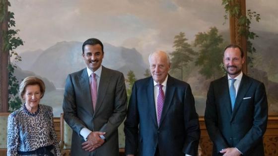 حضر صاحب السمو الشيخ تميم بن حمد آل ثاني أمير البلاد المفدى مأدبة الغداء، التي أقامها جلالة الملك هارالد الخامس ملك مملكة النرويج، وجلالة الملكة سونيا.