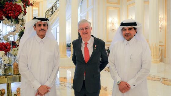 بحث السيد مارك دريكفورد رئيس حكومة ويلز ، مع سعادة الشيخ الدكتور خالد بن ثاني بن عبد الله آل ثاني رئيس مجلس إدارة بنك قطر الدولي الإسلامي، الفرص الاستثمارية.
