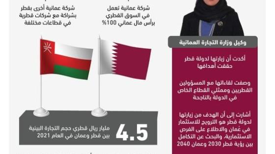 أكدت سعادة السيدة أصيلة بنت سالم بن سليمان الصمصامية وكيل وزارة التجارة والصناعة وترويج الاستثمار في سلطنة عمان، أن زيارتها لدولة قطر تأتي في إطار جهود تعزيز التكامل والشراكة بين البلدين الشقيقين في ا