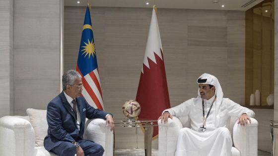 التقى حضرة صاحب السمو الشيخ تميم بن حمد آل ثاني أمير البلاد المفدى، مساء اليوم في استاد لوسيل، مع جلالة السلطان عبدالله رعاية الدين المصطفى بالله شاه.