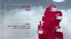 حذرت إدارة الأرصاد الجوية من أمطار رعدية متوقعة مصحوبة برياح قوية على بعض المناطق على الساحل، وفي عرض البحر، مع أمواج عالية. وتوقعت أن يكون الطقس على الساحل، الليلة وحتى الساعة السادسة من صباح يوم