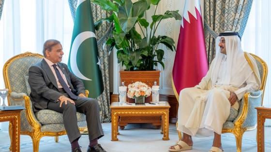 عقد حضرة صاحب السمو الشيخ تميم بن حمد آل ثاني أمير البلاد المفدى، ودولة السيد محمد شهباز شريف رئيس وزراء جمهورية باكستان الإسلامية، اجتماعا بالديوان الأميري.