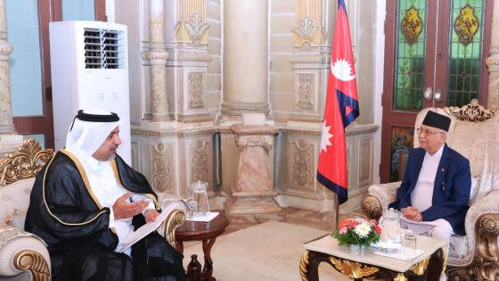 اجتمع دولة السيد خادجا براساد شارما أولي رئيس وزراء نيبال، مع سعادة السيد مشعل بن محمد علي الأنصاري سفير دولة قطر لدى نيبال.