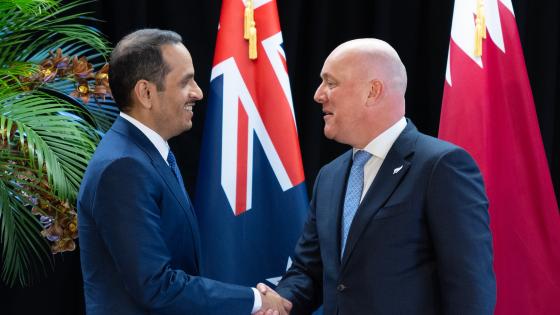 اجتمع معالي الشيخ محمد بن عبدالرحمن بن جاسم آل ثاني، رئيس مجلس الوزراء وزير الخارجية، في ويلنغتون اليوم، مع دولة السيد كريستوفر لاكسن رئيس وزراء نيوزيلندا.
