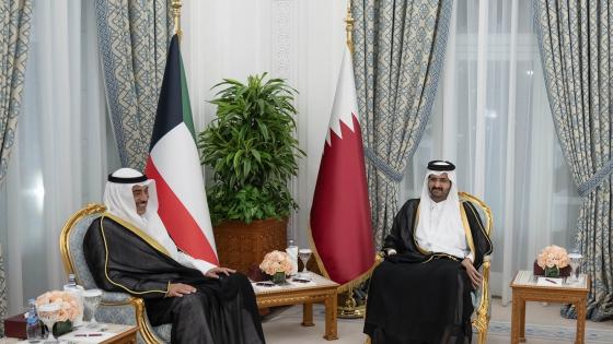 تقدم سمو الشيخ عبدالله بن حمد آل ثاني نائب الأمير، مستقبلي أخيه سمو الشيخ صباح خالد الحمد الصباح ولي عهد دولة الكويت، لدى وصوله والوفد المرافق، مطار الدوحة.