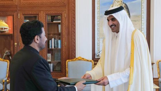 تسلم حضرة صاحب السمو الشيخ تميم بن حمد آل ثاني أمير البلاد المفدى، في مجلس الشيخ عبدالله بن جاسم بالديوان الأميري، صباح اليوم، أوراق اعتماد ستة سفراء جدد لدى الدولة.