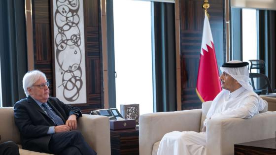 استقبل معالي الشيخ محمد بن عبدالرحمن بن جاسم آل ثاني رئيس مجلس الوزراء وزير الخارجية، اليوم، سعادة السيد مارتن غريفيث وكيل الأمين العام للأمم المتحدة للشؤون الإنسانية ومنسق الإغاثة في حالات الطوارئ، الذي يزور البلاد حاليا.