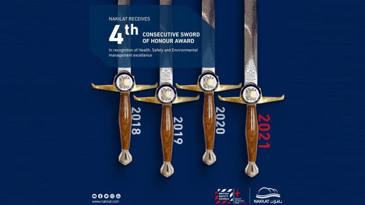 حصلت شركة "ناقلات" على جائزة "سيف الشرف" من مجلس السلامة البريطاني، وذلك للعام الرابع على التوالي، حيث يتم منح هذه الجائزة المرموقة للشركات والمؤسسات ذات الأداء المتميز في إدارة المخاطر المتعلقة بالصحة والسلامة والبيئة في مكان العمل.