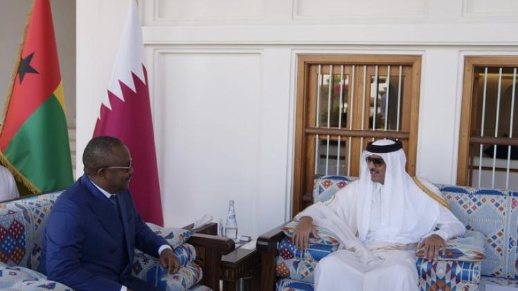 عقد حضرة صاحب السمو الشيخ تميم بن حمد آل ثاني أمير البلاد المفدى، وفخامة الرئيس عمر سيسوكو إمبالو رئيس جمهورية غينيا بيساو، جلسة مباحثات رسمية بمجلس الشيخ عبد الله بن جاسم في الديوان الأميري صباح اليوم.