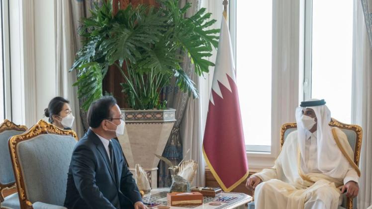 استقبل حضرة صاحب السمو الشيخ تميم بن حمد آل ثاني أمير البلاد المفدى، في مكتبه بالديوان الأميري صباح اليوم، دولة السيد بو كيوم كيم رئيس وزراء جمهورية كوريا والوفد المرافق بمناسبة زيارته للبلاد.