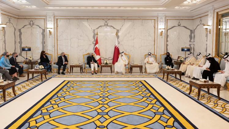 التقى معالي الشيخ خالد بن خليفة بن عبدالعزيز آل ثاني رئيس مجلس الوزراء ووزير الداخلية، مع فخامة السيدة ماري سيمون الحاكمة العامة لكندا، بالديوان الأميري ظهر اليوم.