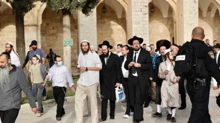 وفي غضون ذلك، اقتحم المستوطنون المسجد الأقصى المبارك من جهة باب المغاربة، على شكل مجموعات ونفذوا جولات استفزازية، وأدوا طقوسا "تلمودية" في ساحاته، تحت حماية مشددة من شرطة الاحتلال.
