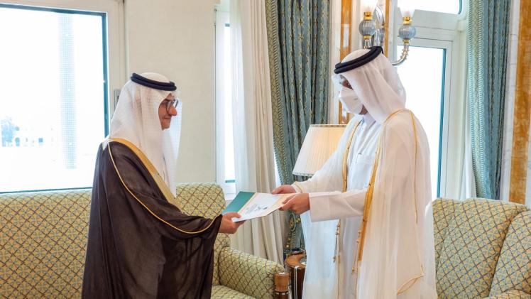 تسلم سعادة الشيخ محمد بن عبدالرحمن آل ثاني، نائب رئيس مجلس الوزراء وزير الخارجية، اليوم ، نسخة من أوراق اعتماد سعادة السفير الأمير منصور بن خالد بن فرحان آل سعود، سفير المملكة العربية السعودية لدى الدولة.