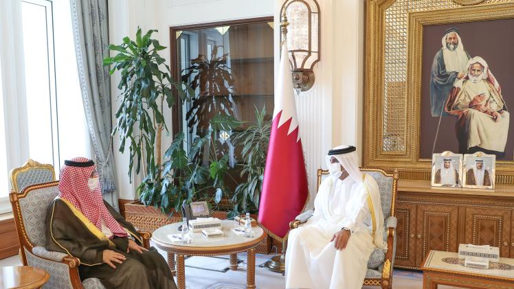 استقبل معالي الشيخ خالد بن خليفة بن عبدالعزيز آل ثاني رئيس مجلس الوزراء ووزير الداخلية، صباح اليوم، سمو الأمير منصور بن خالد بن عبدالله الفرحان آل سعود سفير المملكة العربية السعودية الشقيقة، لدى الدولة.