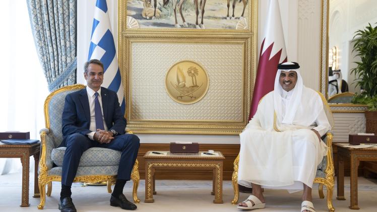 عقد حضرة صاحب السمو الشيخ تميم بن حمد آل ثاني أمير البلاد المفدى، ودولة السيد كيرياكوس ميتسوتاكيس رئيس وزراء جمهورية اليونان، جلسة مباحثات رسمية بالديوان الأميري صباح اليوم.
