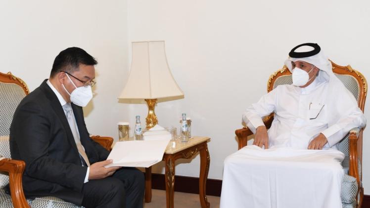 اجتمع سعادة السيد سلطان بن سعد المريخي، وزير الدولة للشؤون الخارجية، اليوم ، مع سعادة السيد تشو جيان، سفير جمهورية الصين الشعبية لدى الدولة.