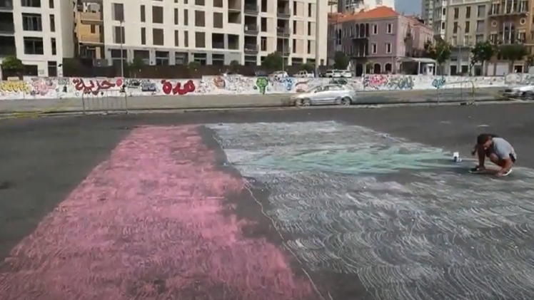 يحاول رسام لبناني شاب دخول موسوعة غينيس للأرقام القياسية عبر رسم العلم اللبناني بالطباشير في وسط العاصمة بيروت على مساحة 200 متر مربع، في خطوة يرمي من خلالها إلى توجيه رسالة "أمل" لبلده الغارق في أزمة اقتصادية واجتماعية غير مسبوقة.
