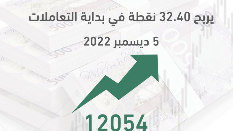 استهل مؤشر بورصة قطر تداولات اليوم على ارتفاع بنسبة 0.27 بالمئة ليضيف إلى رصيده 32.40 نقطة ويرتفع إلى مستوى 12054 نقطة قياسا بنهاية تداولات أمس الأحد.
