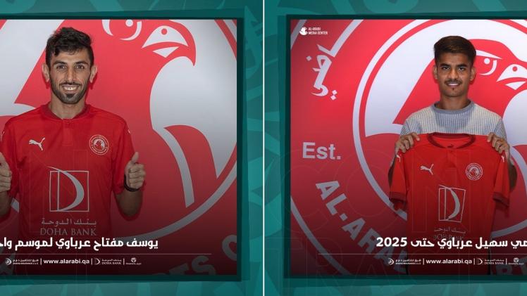 أعلن النادي العربي، اليوم، عن تعاقده مع اللاعبين يوسف مفتاح لمدة موسم واحد، ورامي سهيل بعقد يمتد أربعة مواسم.